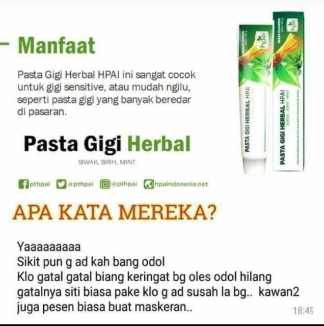 Apa saja kegunaan pasta gigi herbal hpai. Sistem bisnis hni hpai selain dengan ragam produknya yang memiliki banyak manfaat hni hpai juga menawarkan peluang usaha bagi mereka yang tertarik untuk terlibat dalam bisnis ini. Adanya kandungan tersebut sangat mudah menyebabkan sariawan atau luka terutama orang bermulut kering. Menghambat dan menghentikan pertumbuhan jaringan abnormal penyebab kanker tumor.