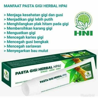 Pasta gigi herbal hpai terbuat dari bahan siwak pilihan dan disinergikan dengan ramuan warisan nenek moyang nusan tara yang telah terbukti berabad silam yang lalu sehingga pasta gigi ini bukan hanya berman faat membersihkan namun juga menyehatkan dan memelihara gigi gusi dan kesehatan mulut. Hni hpai saat ini sudah memiliki beragam produk untuk memenuhi segala kebutuhan keluarga muslim indonesia. Dengan kombinasi bahan aktif sedemikian rupa dan berkualitas tinggi maka pasta gigi.