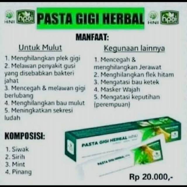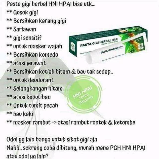 Cara memakai pasta gigi herbal hpai untuk keputihan. Pasta gigi herbal hpai tidak mengandung fluoride. Cara jitu mengobati scabies dengan salep. Manfaat dan khasiat laminine harga pasta gigi hpai tangerang.