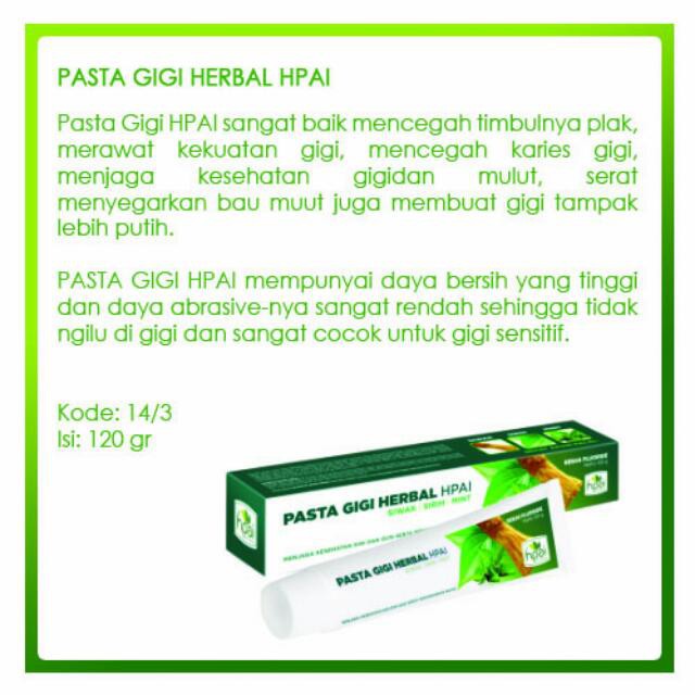 Pasta gigi herbal hpai ini sangat cocok untuk gigi sensitive atau mudah ngilu seperti pasta gigi yang banyak beredar di pasaran. Pasta gigi herbal hpai tidak mengandung fluoride. 16 000 isi kemasan.