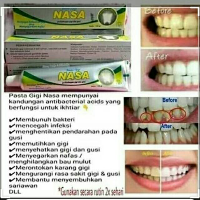 Pasta gigi nasa asli dan palsu. Pasta gigi nasa sangat berkhasiat untuk. Pakai 2 3 x sehari utamakan saat pagi hari dan malam hari sebelum tidur.
