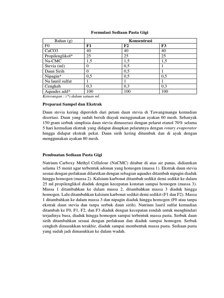 Formulasi sediaan pasta gigi ekstrak daun sirih piper betle l dengan variasi konsentrasi na cmc sebagai bahan pengikat dan uji mutu fisik sediaan oleh. Konsentrasi ekstrak daun sirih merah 1 dan propolis 0 1. Formulasi pasta gigi kombinasi ekstrak daun sirih hijau piper betle linn dan gambir uncaria gambir hunter roxb ita juita1 agus siswanto1 erza genatrika1 abstrak pada plak gigi didominasi oleh bakteri streptococcus mutans.