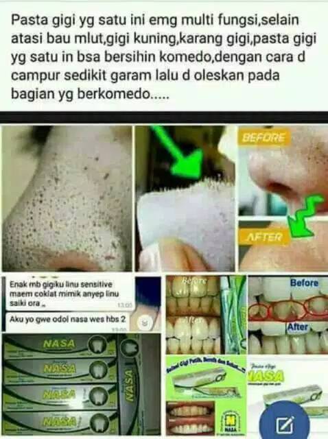 Pasta gigi nasa sangat berkhasiat untuk. Pasta gigi nasa dibuat dengan ekstrak cengkeh diproduksi pt miswak utama serta di pasarkan pt nasa natural nusantara indonesia. Pasta gigi nasa asli gigi menjadi salah satu organ tubuh yang penting bagi kehidupan manusia memiliki gigi sehat akan membuat kita mempunyai pola pikir positif yang dapat mempengaruhi berbagai segi kehidupan.
