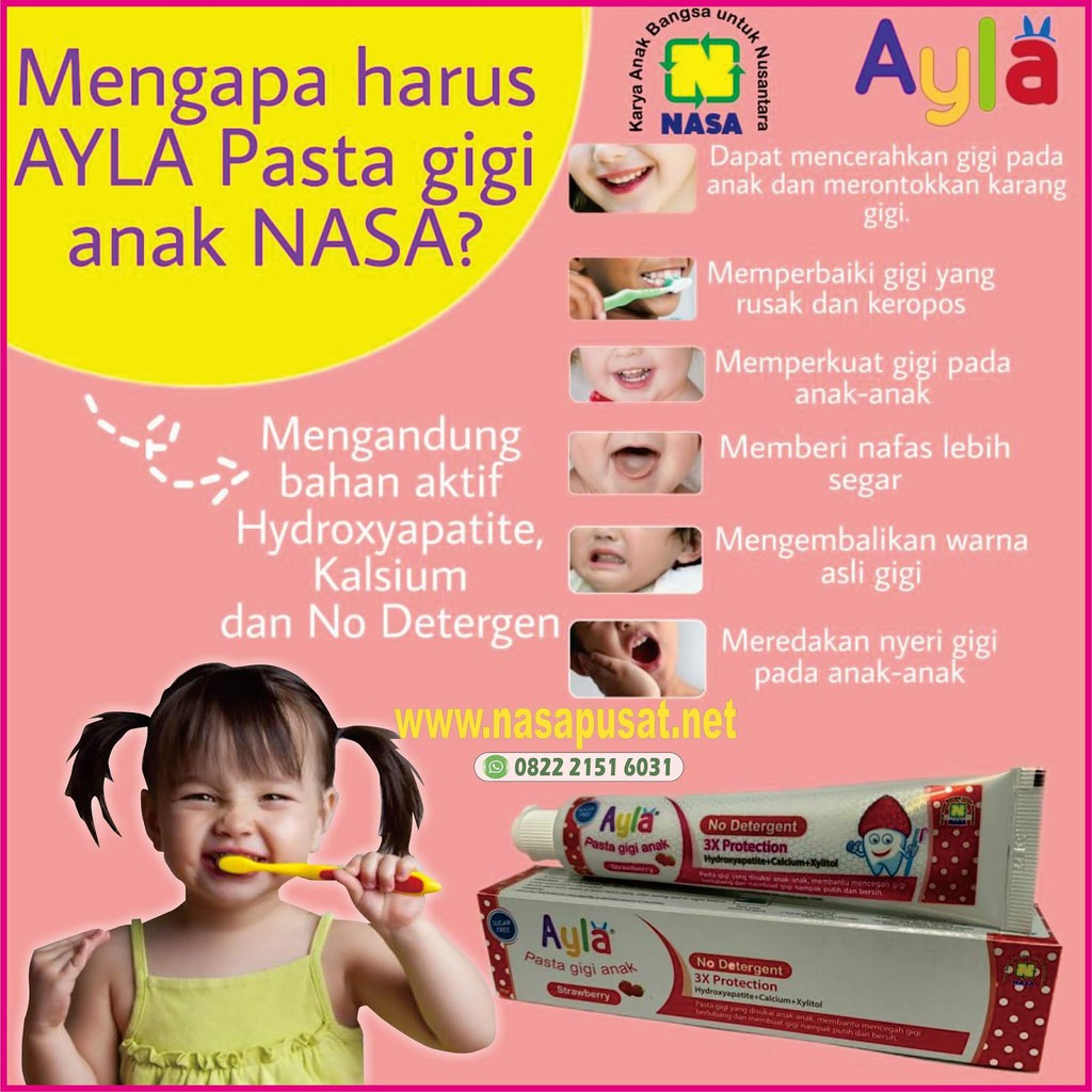 Nasa pasta gigi anak ayla perangsang pertumbuhan gigi anak buble gum 250. Anda bisa memiliki produk dari pasta gigi nasa dengan daftar harga mulai dari rp 13 000 hingga rp 1 350 000 pasta gigi nasa memiliki berbagai rangkaian produk seperti perawatan mulut perawatan kulit dan kesehatan untuk memenuhi kebutuhan anda. Nasa pasta gigi pembasmi semua keluhan di mulut bisa di gunakan mulai anak kecil sampai orang dewasa.