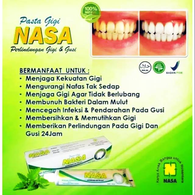 Nasa pasta gigi. Belanja produk pasta gigi aman dan nyaman di tokopedia. Pasta gigi nasa asli tidak dijual dengan harga 5 ribuan seperti pasta gigi pada umumnya.