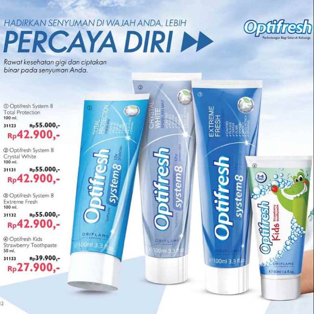 Isinya juga lumayan banyak kalau dibandingkan dg pasta gigi sejenis dg harga yg hampir setara. Optifresh system 8 12hr protection pasta gigi odol terbaik oriflam terbaru katalog oriflame november 2015 online indonesia promo harga diskon. Anda bisa menemukan penawaran menarik untuk daftar harga perawatan mulut oriflame di iprice dengan harga idr rp 29 900 hingga idr rp 58 000.