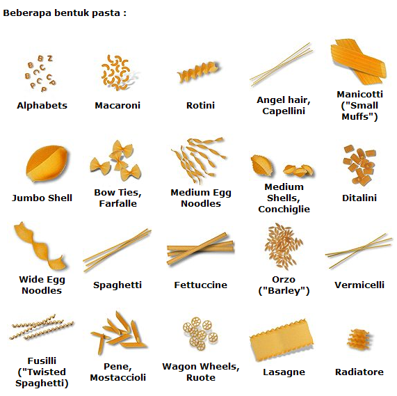 Jenis Pasta Dan Namanya