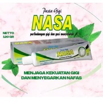 Pasta gigi nasa merupakan produk nasa herbal yang dapat membantu anda menjaga kesehatan gigi dan menghindari gigi anda dari kerusakan akibat bakteri jahat yang ditinggalkan oleh sisa sisa makanan yang tidak dibersihkan secara maksimal. Manfaat pasta gigi nasa juga juga dapat mencegah sariawan dan bibir kering. Pada pasta gigi nasa mengandung minyak cengkeh sebagai bahan alami yang bermanfaat untuk membantu sekaligus menjaga kesehatan gigi.