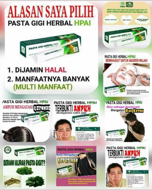 Pasta gigi herbal hpai ini sangat cocok untuk gigi sensitive atau mudah ngilu seperti pasta gigi yang banyak beredar di pasaran. Selain jenis pasta gigi lainnya pepsodent merupakan jenis pasta gigi yang saat ini dipercaya paling efektif untuk membersihkan gigi anda. Karna pasta gigi hpai sendiri sangat lembut untuk mulut dan gusi kalian.