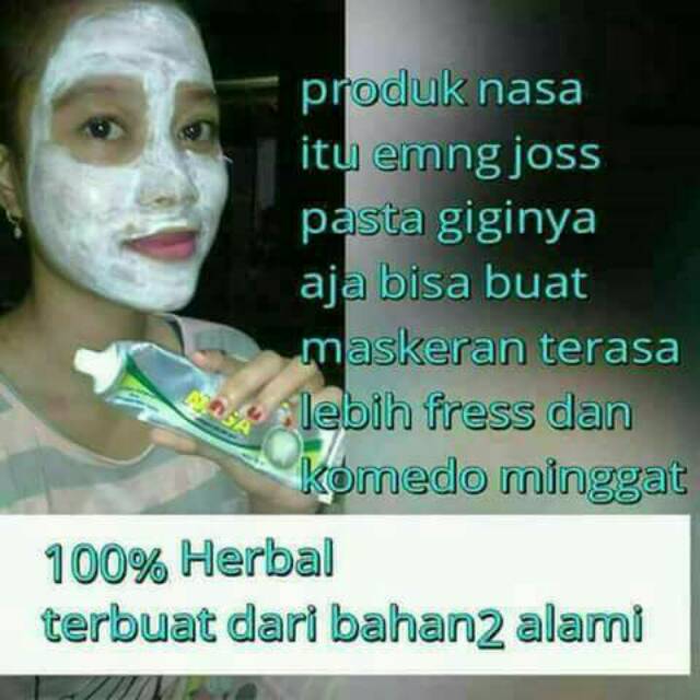 Manfaat pasta gigi nasa untuk wajah. Ini dapat berfungsi sebagai pembersih muka yang bisa membuatnya. Kegunaan pasta gigi untuk wajah karena adanya kandungan aha dan triclosan didalam pasta gigi. Manfaat pasta gigi nasa asli hanya untuk kesehatan gigi dan gusi jadi belum direkomendasikan untuk kecantikan wajah jika anda ingin perawatan wajah bisa baca artikel masker pemutih dan cream pemutih wajah yang aman.