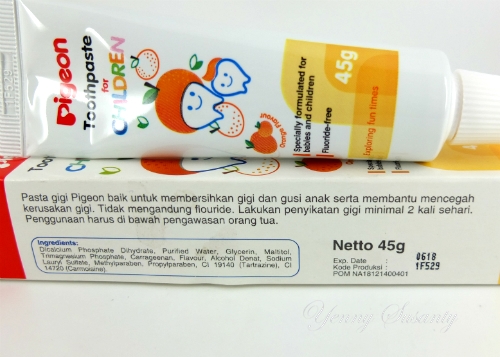 Terbuat dari bahan yang aman untuk si kecil pasta gigi pigeon diklaim bisa membantu mencegah kerusakan gigi dan menjaga kesehatan. Bagi para moms pigeon tentu bukan brand yang asing lagi. Anak di bawah dua tahun boleh memakai pasta gigi ketika dia sudah bisa meludah.