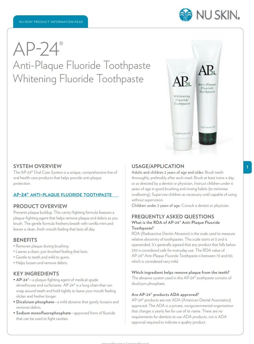 Ap24 mengandung bahan aktif yang memberikan lapisan pelindung pada gigi dan menahan dengan kuat sehingga membuat mulut terasa segar lebih lama. Pasta gigi nuksin ap 24 adalah pasta gigi yang di distribusikan secara ekslusif oleh para distributor nuskin. Soalnya dari jaman batu kan saya pakenya pepsodent baru dijaman sekarang pakenya ap24.