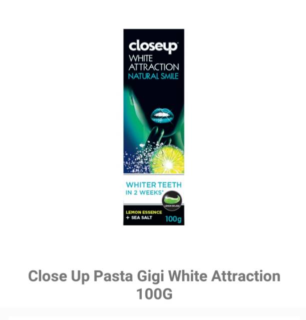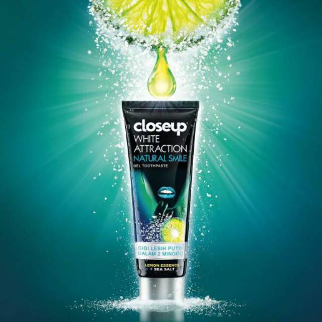 Gel nya bekerja untuk memoles gigi dengan lembut sekaligus untuk menghilangkan noda pada gigi guna menyingkap senyum lebih putih alami hanya dalam 2 minggu. Pasta gigi gel closeup white attraction natural smile ini diperkaya dengan bahan alami lemon essence dan sea salt untuk membuat gigimu lebih putih alami. Mempunyai gigi putih merupakan impian bagi banyak orang.