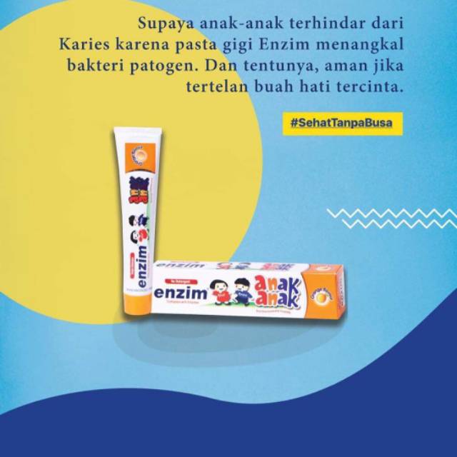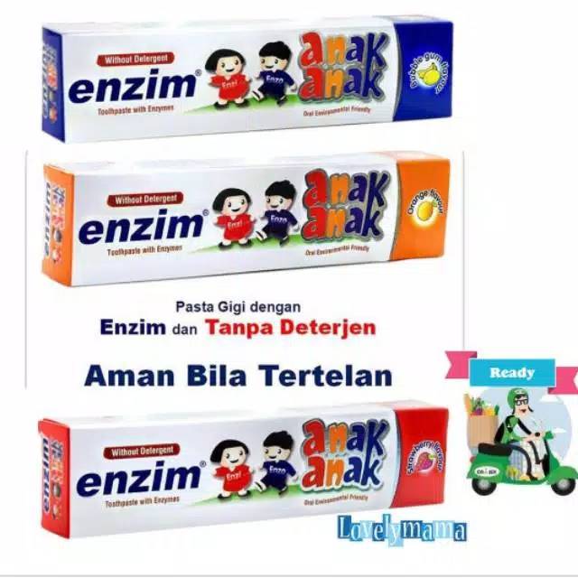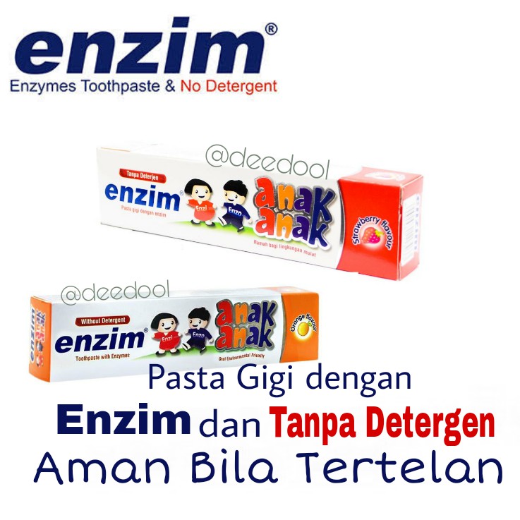 Pasta gigi enzim anak aman jika tertelan. Pilihan rasa buahnya akan membuat si kecil senang dan rajin menyikat gigi. Itu sebabnya anak anak yang makan pasta gigi dapat. Pasta gigi ini tidak mengandung flouride sehingga aman jika tertelan.