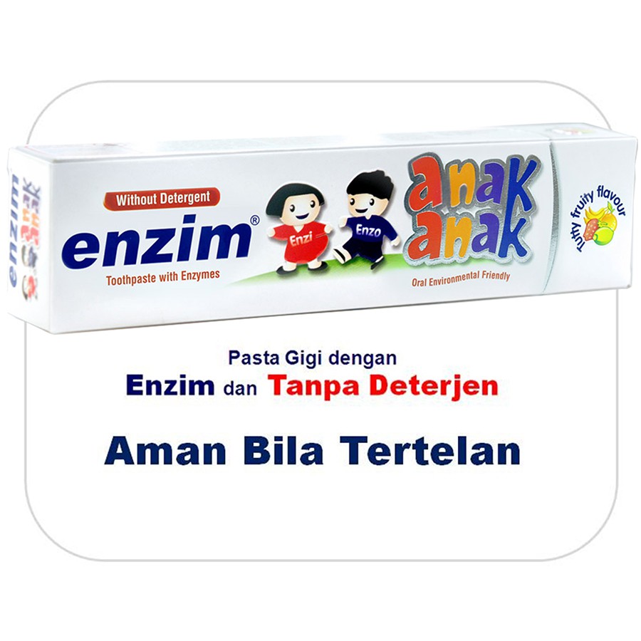 Pasta gigi enzim anak tertelan. Kini sudah banyak pasta gigi untuk anak yang dijual di pasaran seperti pasta gigi yang mengandung fluoride xylitol atau kombinasi keduanya. Pasta gigi ini sendiri merupakan jenis pasta gigi yang memang didekasikan secara khusus untuk anak anak termasuk anak usia 2 tahun. Enzim merancang produk ini dengan zat zat baik seperti glucose oxidase go amiloglucosidase amg dan lactoperoxidase lpo yang dapat mengembalikan kualitas air liur untuk mengontrol kesembangan bakteri.