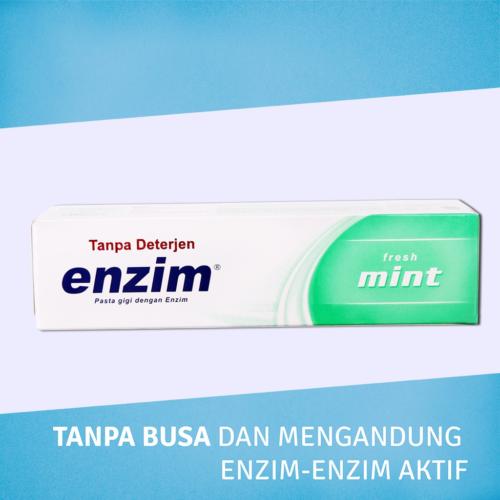 Enzim fresh mint mempunyai rasa menyegarkan yang disukai oleh banyak orang. Cobalah untuk menggunakan enzim karena pasta gigi ini mengandung enzim enzim alami yang berguna untuk mengembalikan fungsi air liur untuk mengontrol keseimbangan bakteri di dalam rongga mulut. Mampu melindungi gigi dan gusi sehingga terhindar dari masalah bau mulut.