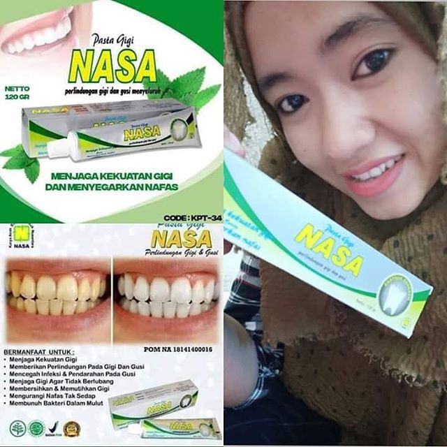Di jamin gigi. Pasta gigi nasa dibuat dengan ekstrak cengkeh diproduksi pt miswak utama serta di pasarkan pt nasa natural nusantara indonesia. Pasta gigi herbal nasa memutihkan dan melindungi gigi gusi.