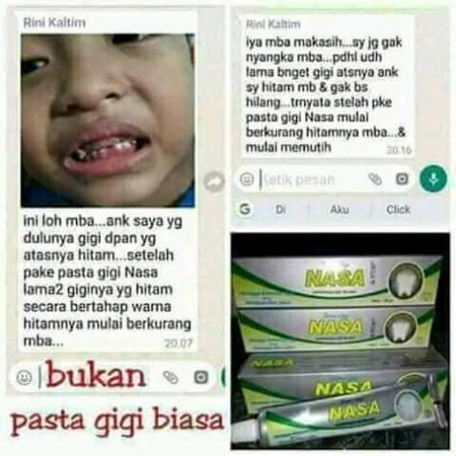 Pasta gigi nasa yg asli. Kandungan klorida pottasium sodium surabaya pusat pgn di surabaya bicarbonate fluoride silika sulfur vitamin c trimethyl amine salvadorine tannins dan beberapa mineral lainnya berfungsi untuk. Pasta gigi nasa adalah pasta gigi yang diformulasikan khusus untuk menjaga kesehatan gigi dan mengatasi masalah pada gigi gusi dan mulut serta terbuat dari bahan herbal alami yaitu ekstrak cengkeh. Mendengar pt nasa pikiran kita pasti langsung mengasosiasikanya dengan crystal x sebuah produk mega best seller untuk kesehatan organ kewanitaan tidak salah memang karena nasa memang begitu identik dengan crystal x salah satu produk evergreen yang banyak sekali diminati kaum hawa.