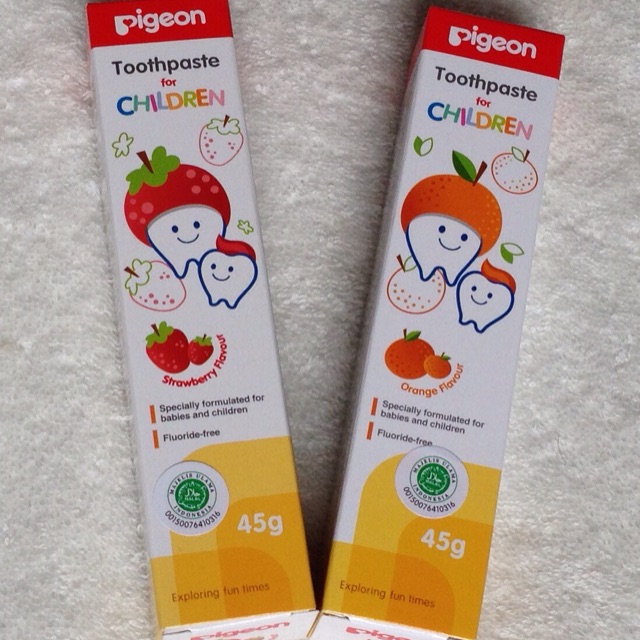 Pasta gigi pigeon. Selama persediaan masih ada. Pasta gigi pigeon punya beberapa varian rasa yang disukai anak seperti stroberi dan jeruk untuk si kecil. Pigeon children tooth paste 45 gram strawberry pasta gigi yang aman utuk bayi karena menggunakan pemanis alami malbit yang tidak merusak gigi.