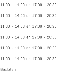 Zon feestdagen. 050 68 60 90 openingsuren. Er is keuze uit 6 verschillende sauzen.