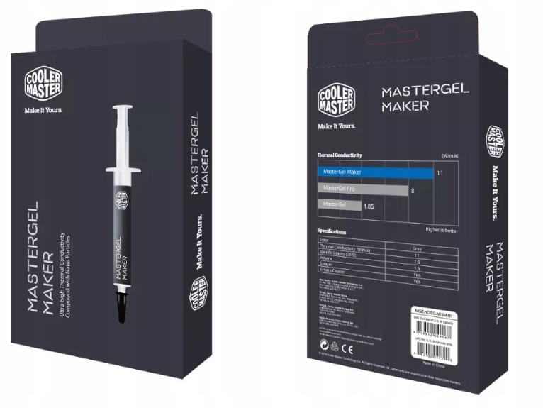Złota pasta termoprzewodząca cooler master zapewnia wyjątkowo wysokie przewodnictwo cieplne 3 5 w mk i niską rezystancję termiczną 0 190 c w jednocześnie nie przewodząc elektryczności.