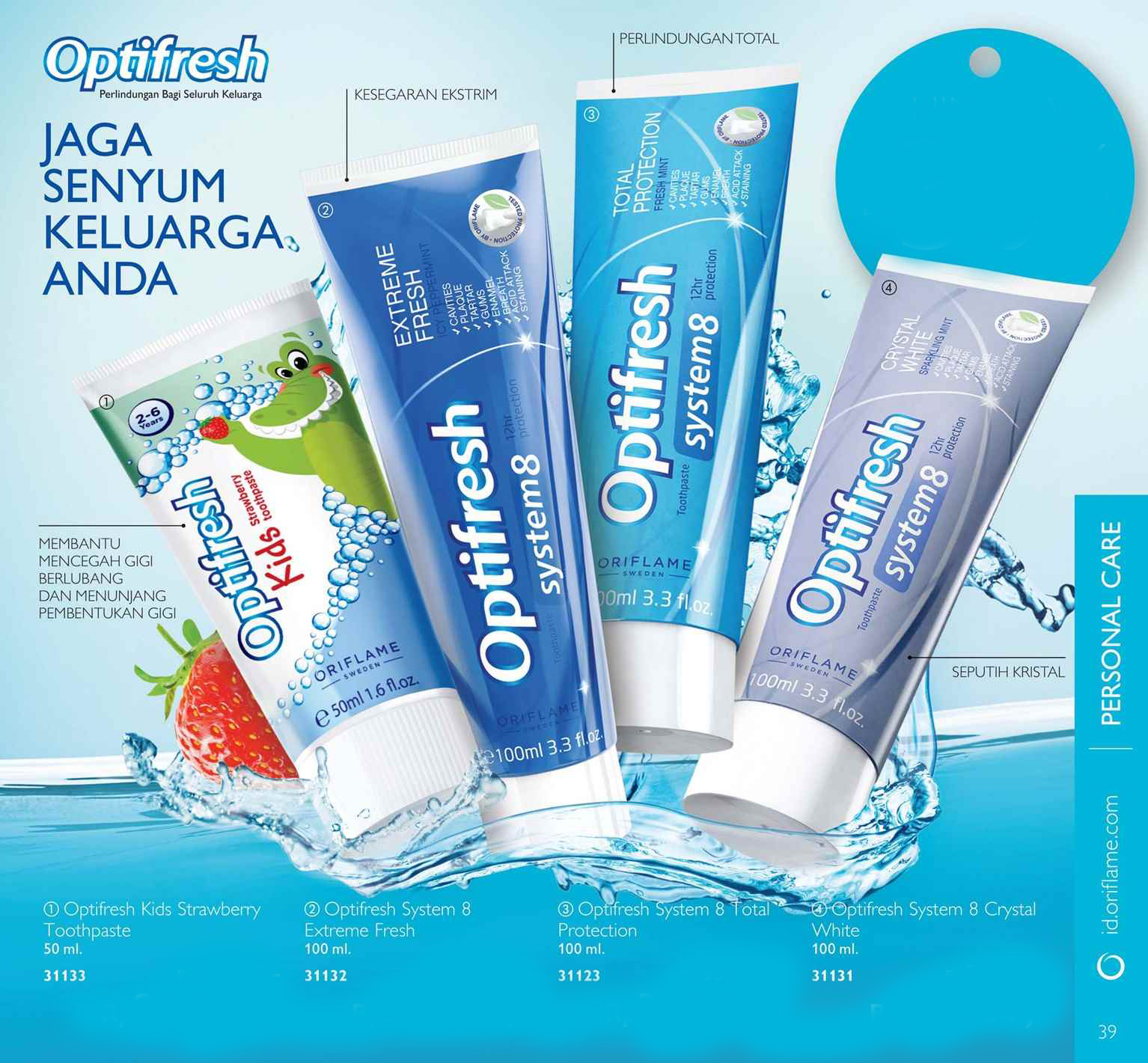 Optifresh menawarkan rangkaian oral care yang lengkap untuk seluruh keluarga anda. Dibandingkan brand lainnya pasta gigi oriflame optifresh crystal white ini memiliki khasiat yang bagus dan di saya cepat terlihat hasilnya. Menyikat gigi dengan pasta gigi optifresh system 8 adaah cara sederhana untuk membantu menjaga senyum anda benar benar menyenangkan menyegarkan bersih dan.