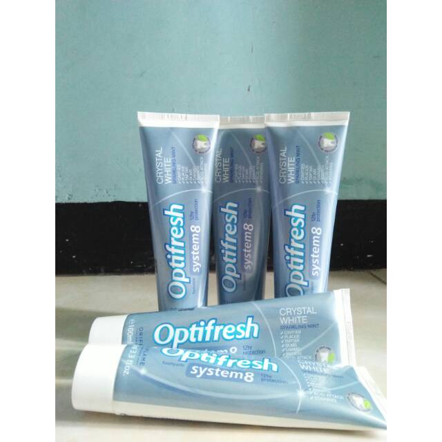 Optifresh system 8 crystal white merupakan pasta gigi dengan formulasi khusus yang bisa membantu memperkuat gigi agar tidak mudah rusak sekaligus menghadirkan warna putih alami pada gigi.
