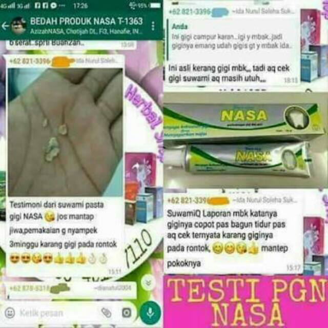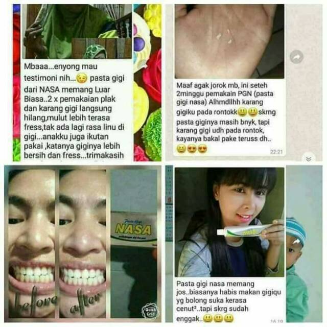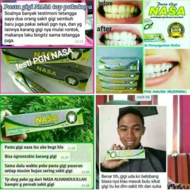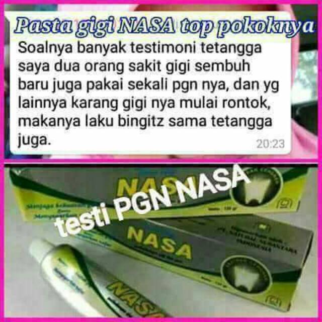 Testimoni pasta gigi nasa untuk karang gigi. Sudah ada lebih dari 5 varian pasta gigi formula yang dijual di. Pasta gigi herbal nasa memutihkan dan melindungi gigi gusi. Pasta gigi nasa merupakan produk pasta gigi herbal yang memiliki manfaat melindungi gusi dan gigi agar tetap kuat terhindar gigi berlubang menghilangkan bau mulut dan membuat nafas segar sepanjang hari.
