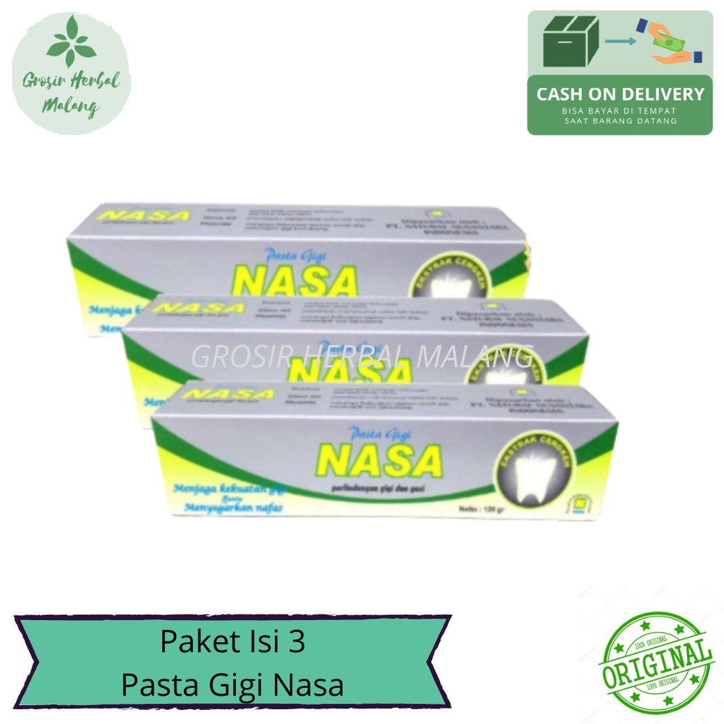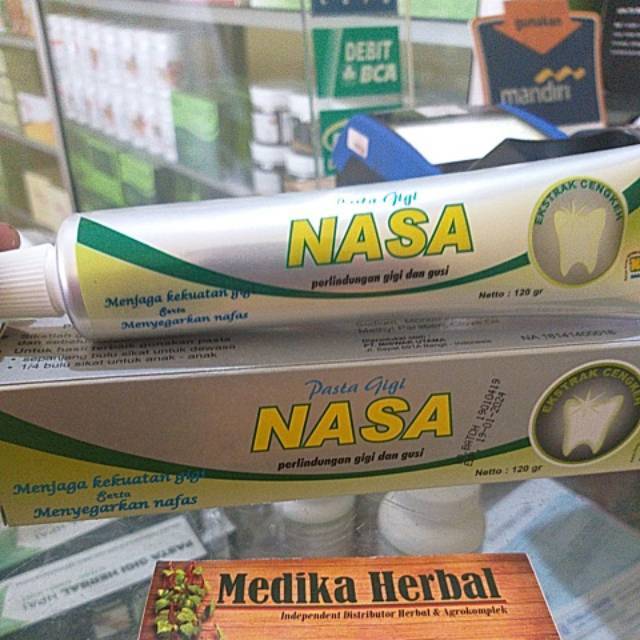 Kandungan dan manfaat pasta gigi nasa. Pasta gigi nasa merupakan produk pasta gigi herbal yang memiliki manfaat melindungi gusi dan gigi agar tetap kuat terhindar gigi berlubang menghilangkan bau mulut dan membuat nafas segar sepanjang hari. Bahan bahan alami yang terkandung di dalamnya yaitu clorida anti bacterial acids sodium bicarbonate pottasium silika flouride vitamin c sulfur salvadorine trimethyl amine tannins dan mineral mineral lainnya.